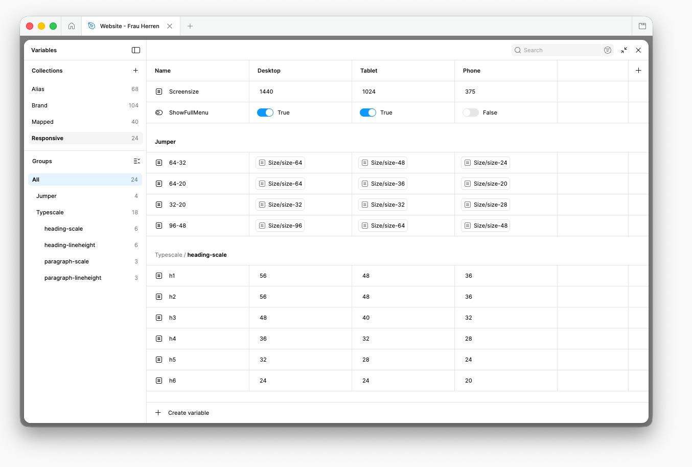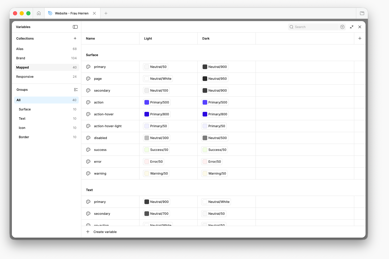 In Figma arbeite ich mit Variables, um Designwerte wie Farben, Abstände und Grössen konsistent zu organisieren. Das erleichtert Anpassungen und schafft eine gute Grundlage für strukturierte, skalierbare Designs.